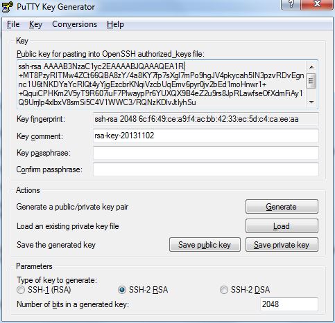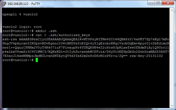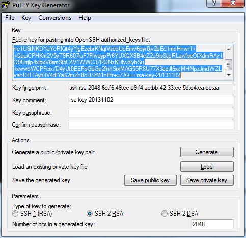 Nu när du har tryck på enter efter andra kommandot så ska du kopiera och klistra in din "Public key" från PuTTYgen rutan.