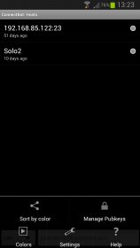 Har märkt att ConnectBot inte laddar in key när man startar om ConnectBot, så man får gå in på "manage pubkeys" och trycka på hänglåset.