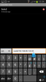 Nu kan du ansluta med Connectbot genom att skriva root@DinExternaIp:22